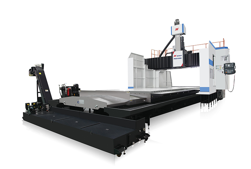 PM30120SC型龍門加工中心主要適用于航空、航天、汽車、能源、信息、模具等行業(yè)的零件加工。以加工黑色和有色金屬大型復(fù)雜零件為對象,具有高速、高精度、高柔性、環(huán)保等特點。